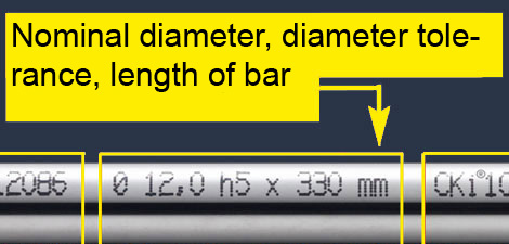 The unique nature of our range of services can also be seen in our marking. We are the only company to mark our raw bars and ground bars with a unique quality code. Thanks to our self-developed measuring and marking process, our customers can view all data that is relevant to production at a glance. Actual diameter, diameter tolerance, pitch angle, holes, length, grade and so on.